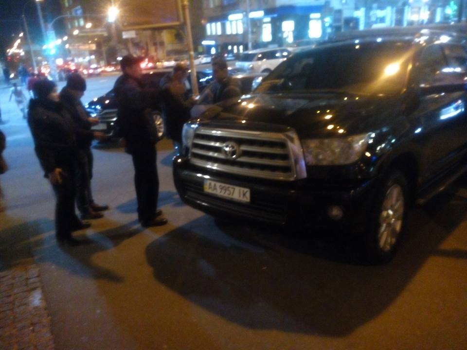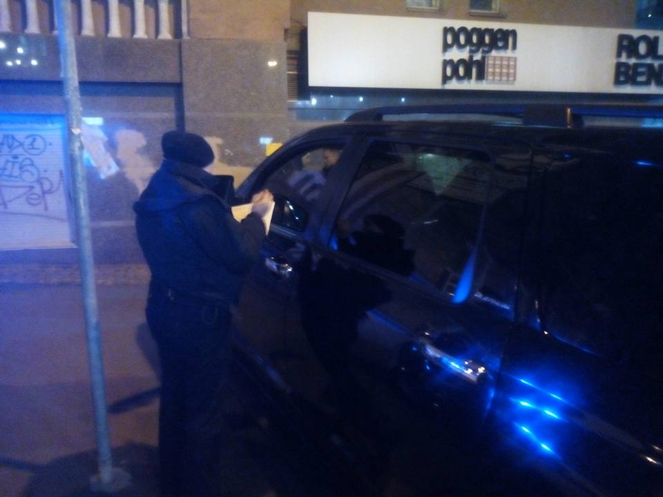 Приехавшая вскоре полиция составила протокол на нарушителей. По словам Фощана, авто пыталось выехать, но полицейские заставили авто остановиться.