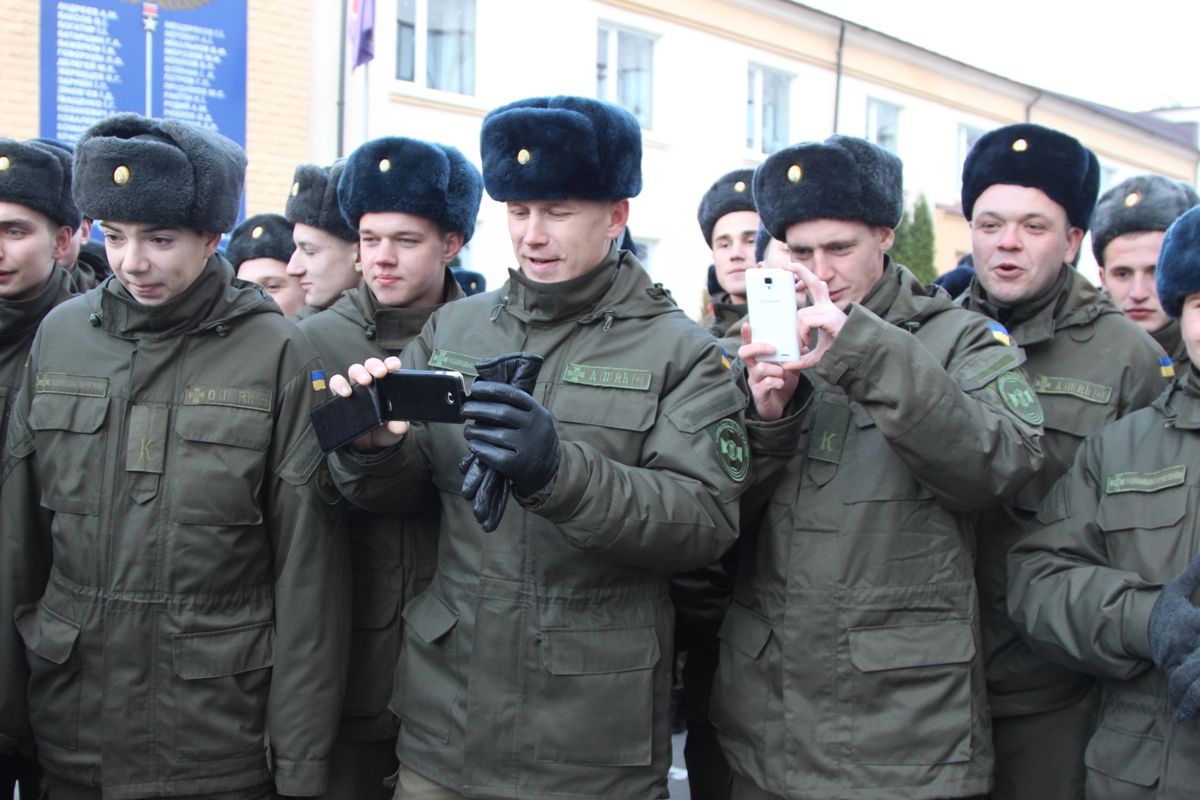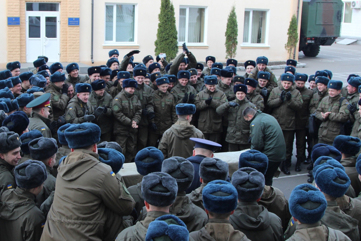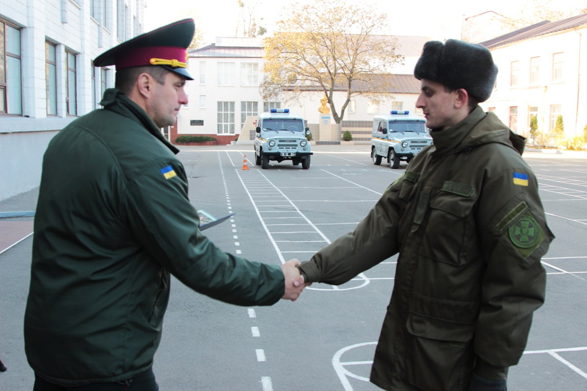 За отличное выполнение служебных обязанностей зампотех Академии наградил солдат Артема Кобрика, Сергея Нетенця, Игоря Фетько и Николая Гриненко фотографиями у развернутого знамени Академии.