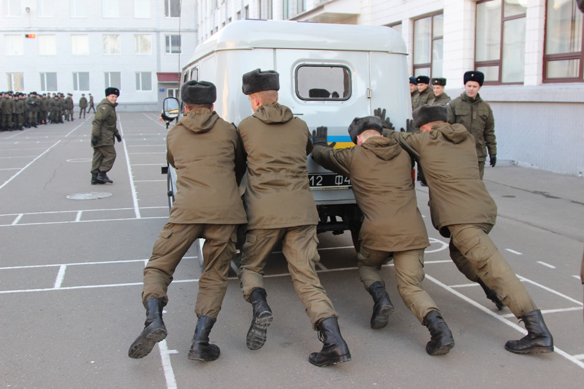 В честь праздника организаторы подготовили специальные и довольно находчивые конкурсы. Ребята соревновались за первенство в таких дисциплинах: замена колеса на автомобиле УАЗ, передвижения автомобиля на расстояние 50 метров, выполнение неполной разборки АК-74 и его сборки, а также снаряжение магазина АК-74.