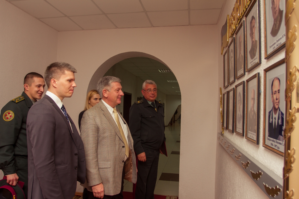 В начале встречи исполняющий обязанности начальника Национальной академии генерал-майор Сергей Соколовский ознакомил гостей с многолетней историей учебного заведения, с задачами, которые выполняет на сегодняшний день Академия, среди которых есть и участие в антитеррористической операции, а также рассказал об учебно-материальной базе и современных средствах обучения.
