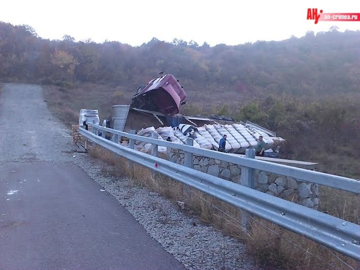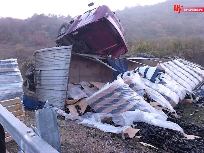 На высокогорье трассы Ялта-Севастополь опрокинулся грузовой автомобиль, перевозивший бутылки. В результате ДТП никто не пострадал.