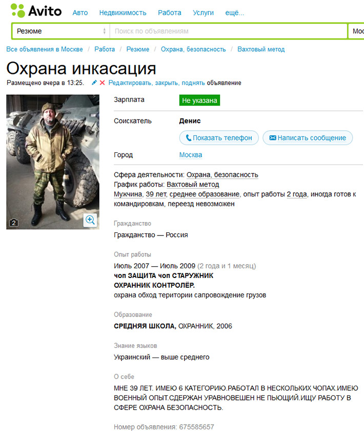 Россиянин разместил свое резюме и фото в базе данных вакансий, претендуя на должность в сфере охраны.