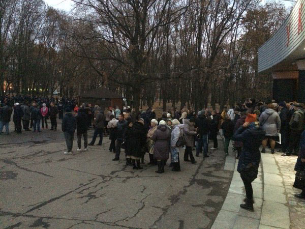 Возле киноконцертного зала "Украина" в Харьковском саду Шевченко, где через 2 часа пройдут слушания по переименованию топонимов, уже снуют толпы бюджетников. Об этом сообщают в соцсетях.
