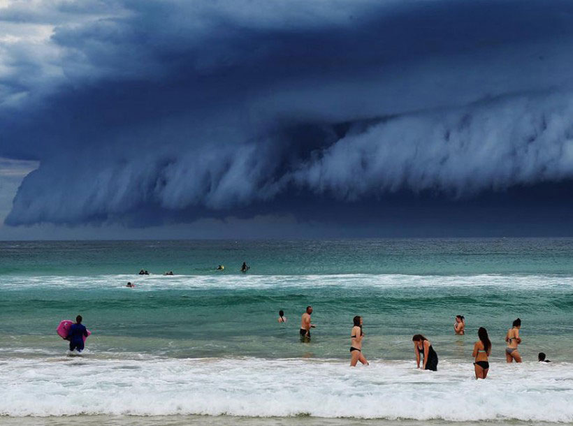 Недавно в Австралии наблюдалось весьма уникальное природное явление – грозовое облако, выглядящее как цунами, накрыло побережье Сиднея. Метеорологи сразу же оповестили местных жителей о непогоде и возможных шквалах и наводнении. Однако предвестник холодного фронта не напугал австралийцев; люди то и дело спешили запечатлеть «волну».
