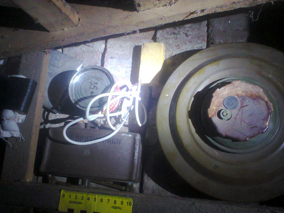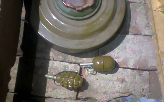 3 мины, 2 гранаты, тротиловая шашка, «бикфордов» шнур и порох были изъяты оперативными сотрудниками Дружковского отделения полиции в заброшенном доме в с. Верхнеторецкое, расположенном на линии разграничения с оккупированной территорией.