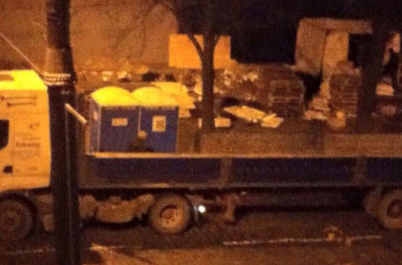 Фотофакт: В Киеве, оказывается, был "тарифный майдан" 17 ноября 2015 09:39 Сегодня ночью напротив здания Правительства киевские коммунальщики разобрали "тарифный майдан" радикала Олега Ляшко.