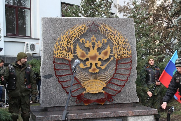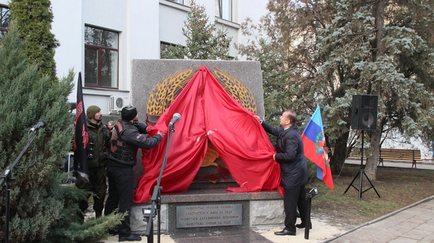 Представители мотоклуба "Ночные волки – Донбасс" установили в центре Луганска памятный знак "Символ новой России глазами "Ночных волков". Об этом передает Главное со ссылкой на один из информционных ресурсов террористов.