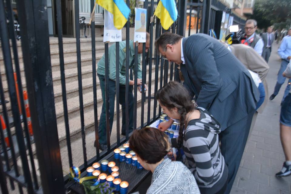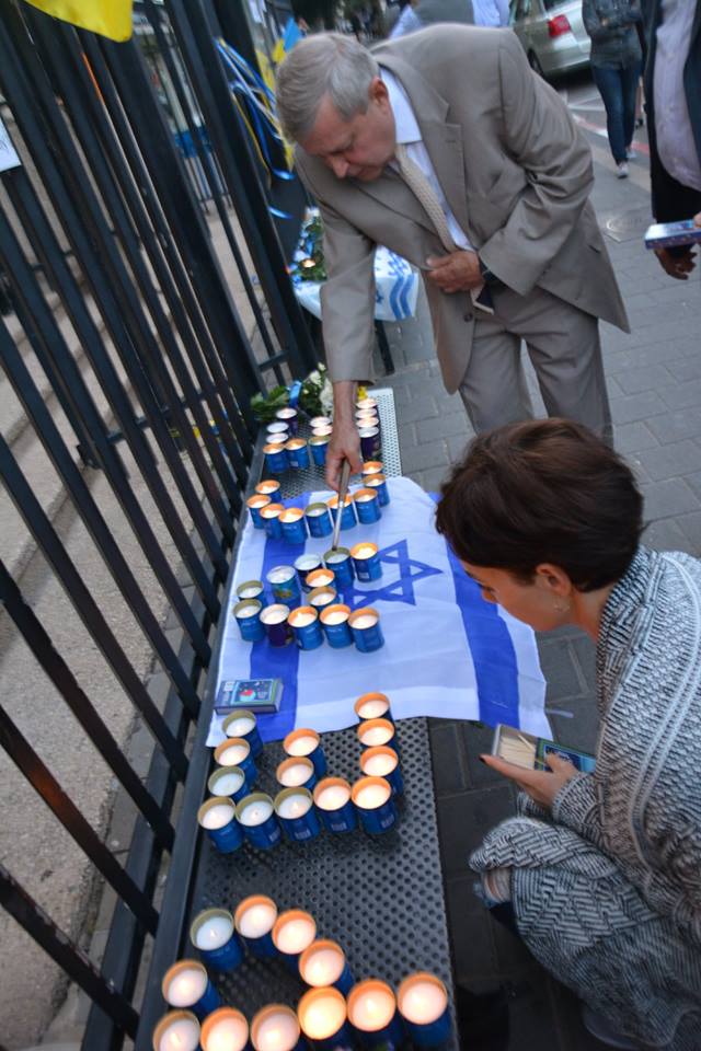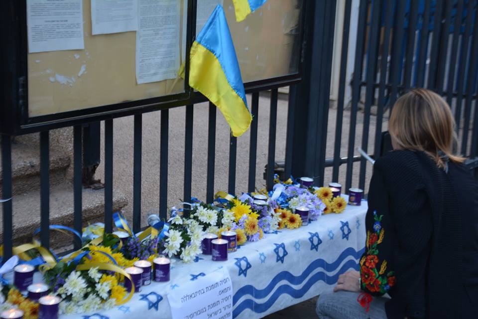 Біля будинку дипмісії створили композицію з квітів, свічок та стрічок кольорів державних прапорів; а шарики підняли високо у повітря український та ізраїльський прапори, символізуючи непорушність зв’язків між народами та прагнення до мирного майбутнього.