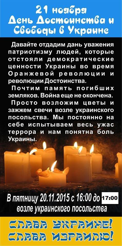 Тому, розуміючи і співчуваючи українцям, ізраїльтяни ініціювали акцію до Дня Гідності та Свободи України.
