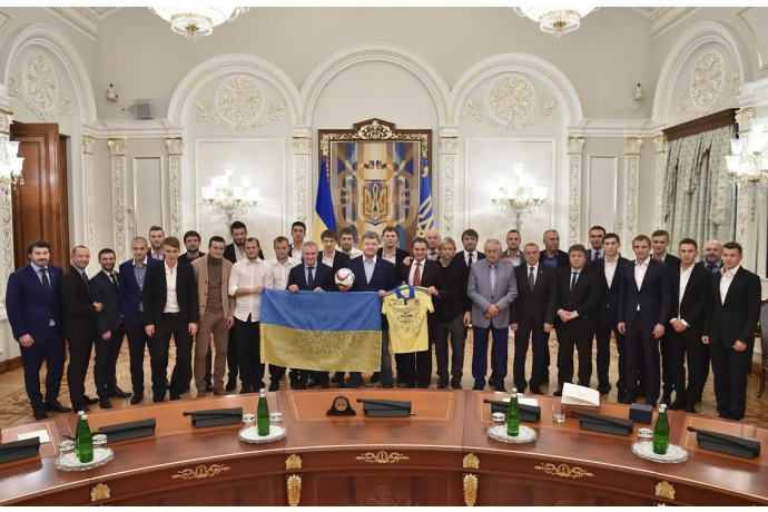 Также президент поблагодарил команду за победу. «Последний матч был настоящим боем. Это видел весь мир. Вы стремились не просто победить, а отстоять честь украинского футбола и высоко поднять украинский флаг. Вам это удалось», - сказал Порошенко после совместного просмотра важнейших моментов последних двух игр сборной.