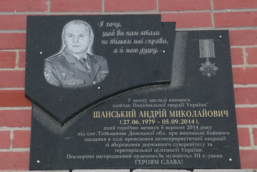 Після вражаючої подорожі по історичним місцям юні патріоти завітали до загальноосвітньої спеціалізованої школи фізико-математичного профілю № 12 у якій навчався капітан Андрій Шанський. Офіцер героїчно загинув 5 вересня 2014 року під смт. Тельманове Донецької області при виконанні бойового завдання в ході проведення антитерористичної операції зі збереження Державного суверенітету та територіальної цілісності України. Андрія було посмертно нагороджено орденом «За мужність» ІІІ ступеня. Діти вшанували пам'ять героя хвилиною мовчання та поклали квіти до меморіальної дошки.
