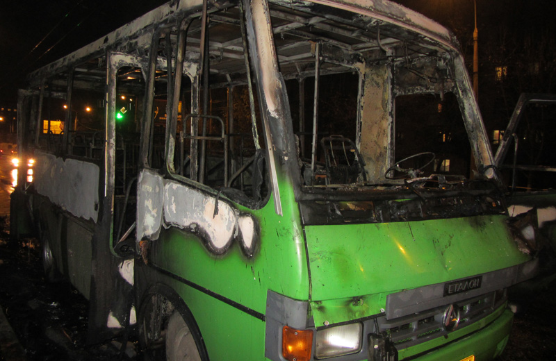 Водитель заглушил автобус и выбежал из салона. Потушить огонь он даже не пытался, так как салон уже пылал весь. Автобус сгорел за считанные минуты. Стоявшие на остановке люди вызвали пожарных.