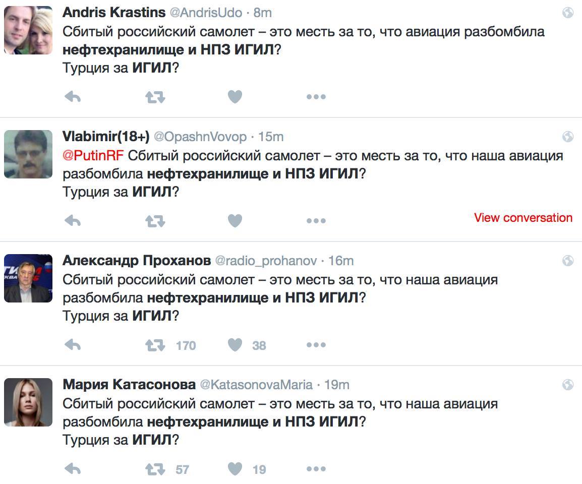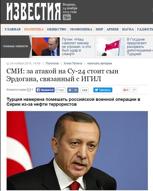 Дешевая нефть, которую террористы ИГИЛ переправляют в Турцию, может быть истинной причиной атаки на российский бомбардировщик Су-24 утром 24 ноября. Об этом сообщают "правдивые" "Известия".