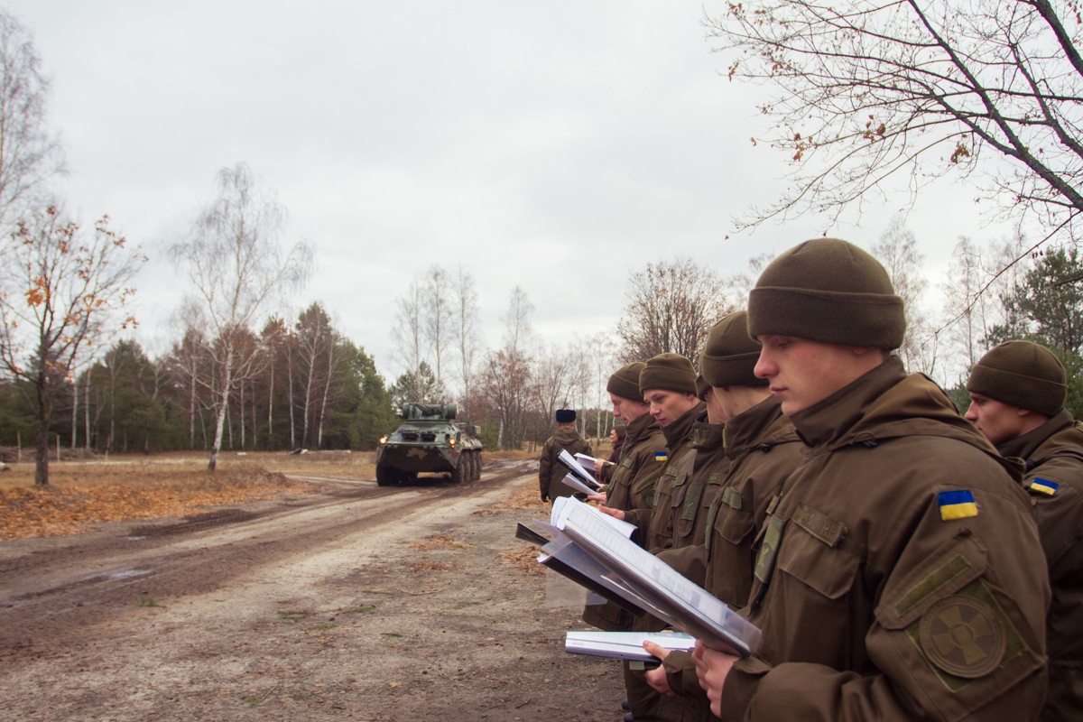 В учебном центре Академии Нацгвардии курсанты командно-штабного факультета сдавали зачеты по вождению БТР-3Е.
