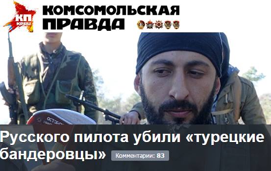 Как стало известно порталу Главное, "Комсомольская правда" опубликовала новость, в которой говорится, что пилота сбитого российского истребителя Су-24 убили "турецкие бандеровцы".