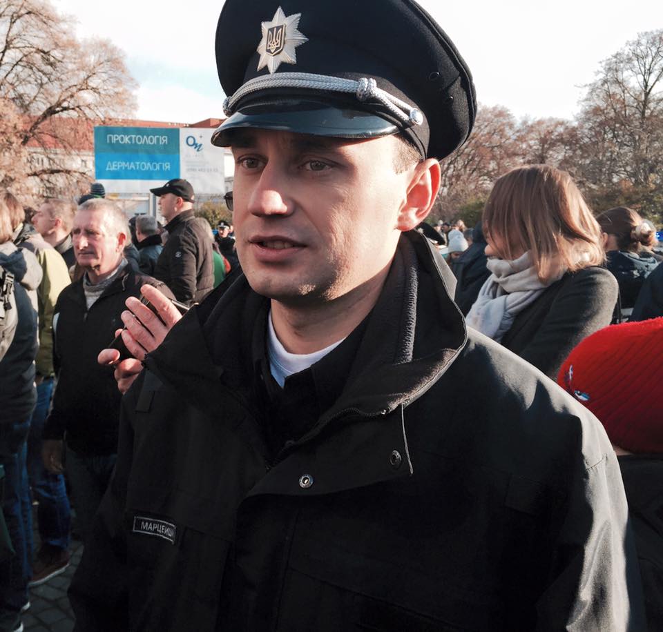 Среди полицейских - легендарный боец 128 горно-пехотной бригады Тараса Пономаренко, "который украл из-под носа сепаров танк в Дебальцево".