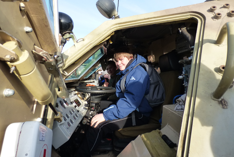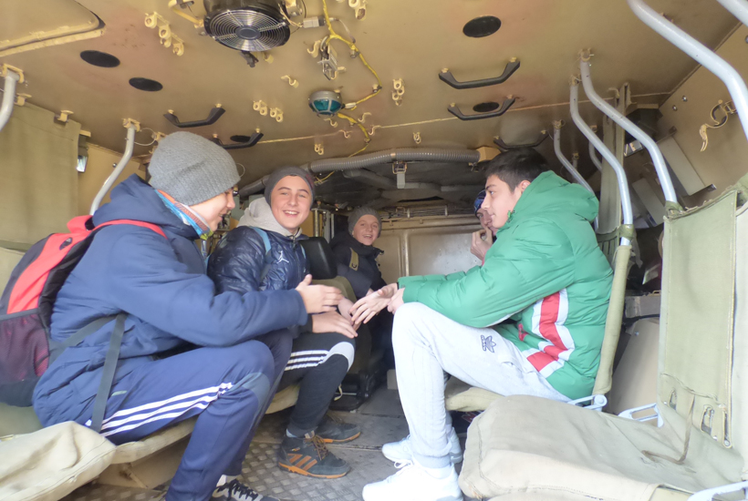 Школярі також мали можливість ознайомитись із сучасною бронетехнікою, а саме БТР-4Е1, та відвідати розплідник службових собак, де їм було представлено до уваги виступ службової собаки.