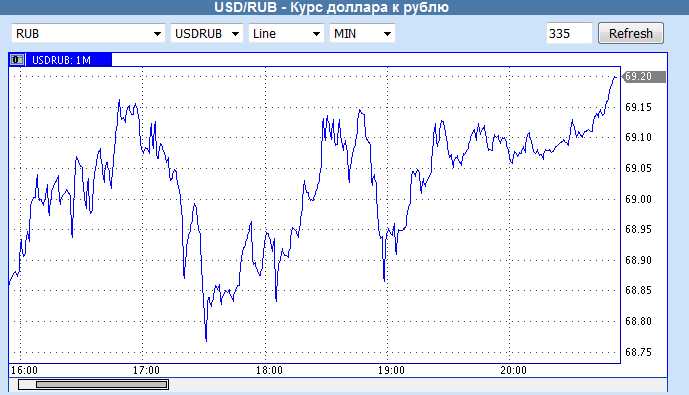 Снижение нефтяных котировок привело к ослаблению российского рубля. В ходе торгов на Московской бирже курс доллара сегодня впервые с сентября 2015 года поднялся выше 69 руб. По состоянию на 19.54 по Киеву, курс российской валюты в доллару торгуется на уровне 69,20 руб., что на 1,71%. выше уровня закрытия предыдущих торгов.