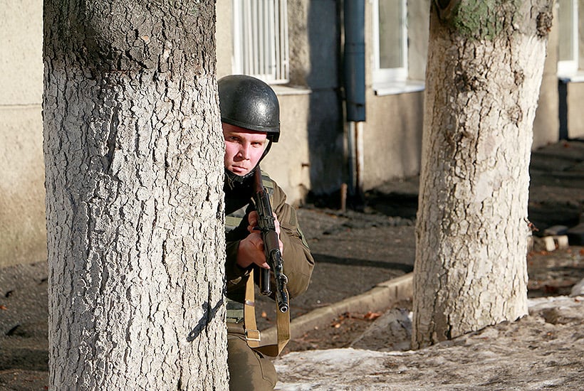 В ході тренування бійці практично відпрацювали ввідні по відбиттю нападу на автомобільний парк та контрольно-пропускний пункт військової частини, а також дії особового складу в умовах ускладнення обстановки.