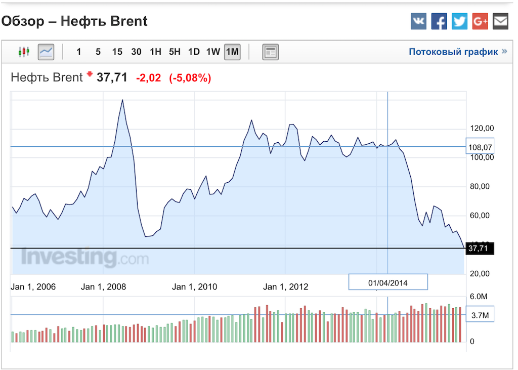 В видеосюжете он подробно прокомментировал ситуацию с катастрофическим для российского бюджета — и, главное, для амбиций Владимира Путина — падением мировых цен на черное золото, которое оказалось самым глубоким за минувшие семь лет. Подробности — в видеоролике ниже. "Главное" рекомендует: посмотрите обязательно. Там в доступной легкой и даже иронической форме описано, что будет с Россией при падении цен на нефть ниже 40 долларов.