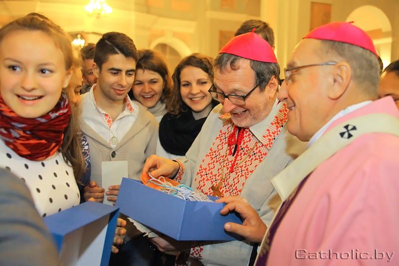 "Это мой последний жест — последний подарок — знак того, насколько вы мне дороги", — сказал архиепископ Клаудио Гуджеротти, перед тем как надеть национальную рубашку в минском кафедральном соборе. Молодежь встретила это громкими аплодисментами, пишет Главное со ссылкой на Еврорадио.