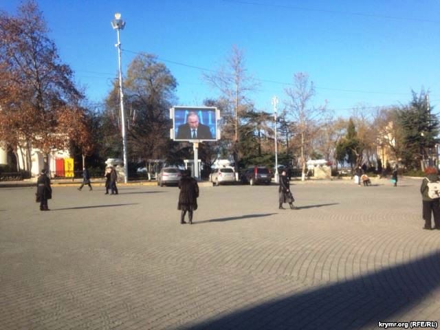 Крымчане проигнорировали "уличную" пресс-конференцию президента России Владимира Путина, которую 17 декабря в Крыму транслировали с помощью мобильных телевизионных устройств, пишет "Главное" со ссылкой на "Остров".