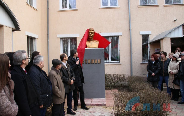 По словам представителя «Союза коммунистов Луганщины» Олега Попова, открытие бюста в Луганске состоялось в честь дня рождения вождя.