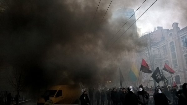 Участники марша в поддержку обвиняемых в убийстве Олеся Бузины подошли к зданию прокуратуры города Киева. Как передает "Главное" со ссылкой на телеканал 24, активисты жгли файеры и скандировали "Революция".