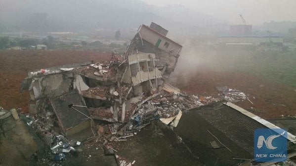 В Китае в результате оползня сразу 22 дома просто провалились под землю. Как минимум 41 человек числится пропавшим в городе Шэньчжэнь. Около 900 людей удалось спасти. 41 человек числится пропавшим без вести, сообщает "Главное".