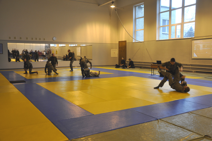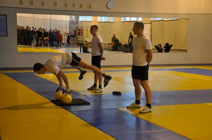 На кафедре специальной физической подготовки преподаватели университета продемонстрировали выполнение комплексных силовых упражнений для вступительного экзамена по физической подготовке, а также организовали показательные выступления работников и курсантов университета.