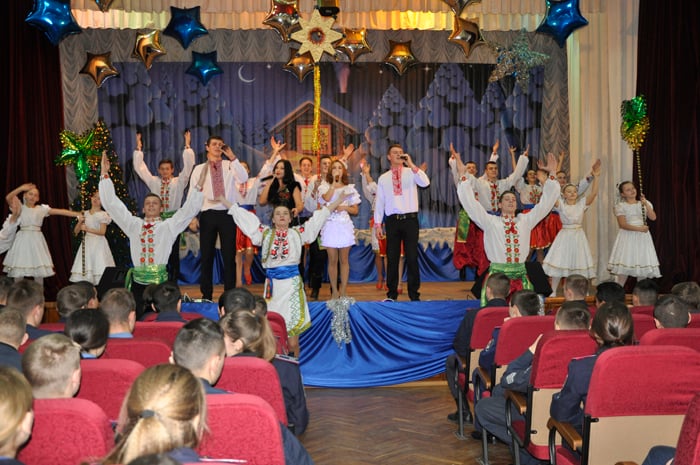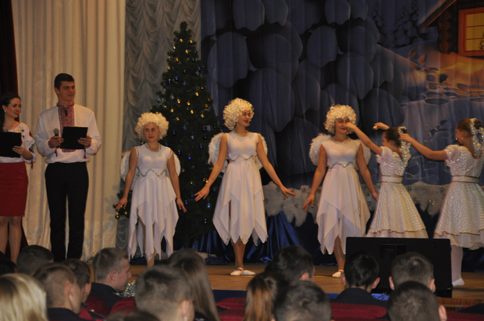После завершения официальной части начались праздничные мероприятия. Святой Николай поздравил всех присутствующих с новогодними праздниками и зажег в университете новогоднюю елку. Курсанты и студенты университета подготовили небольшую концертную программу, которая завершилась вокально-хореографической композицией «Украина колядует».