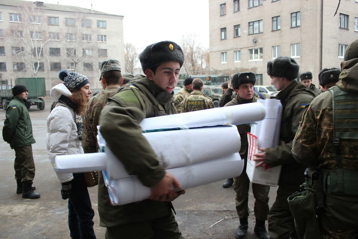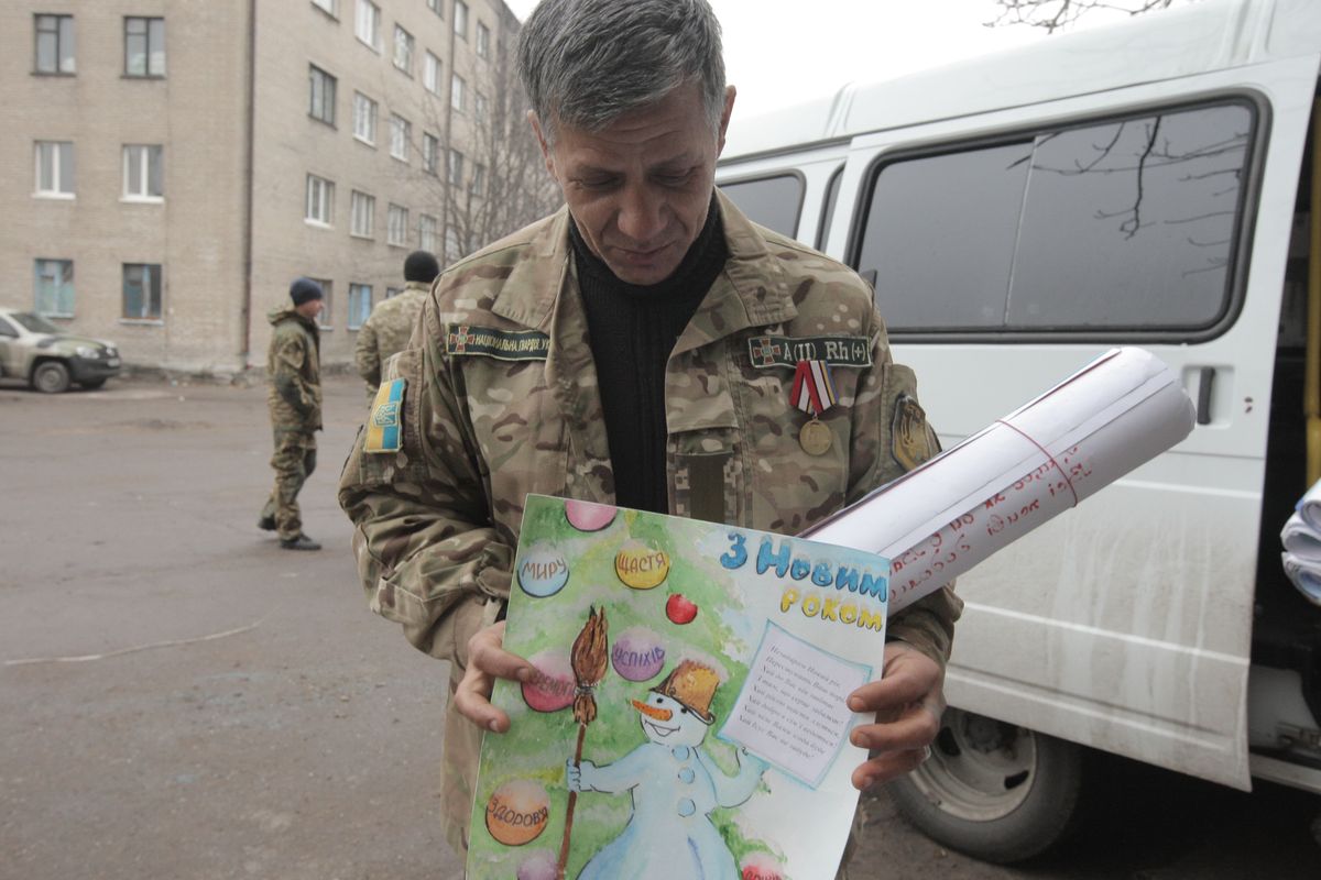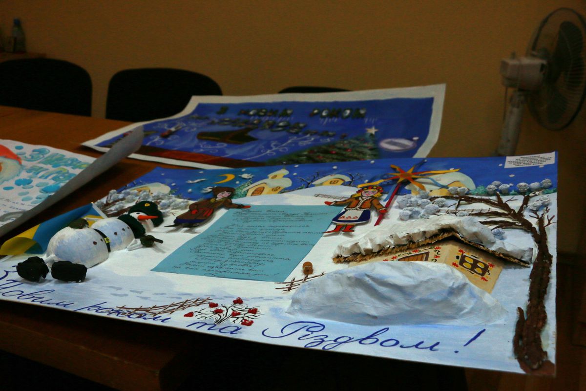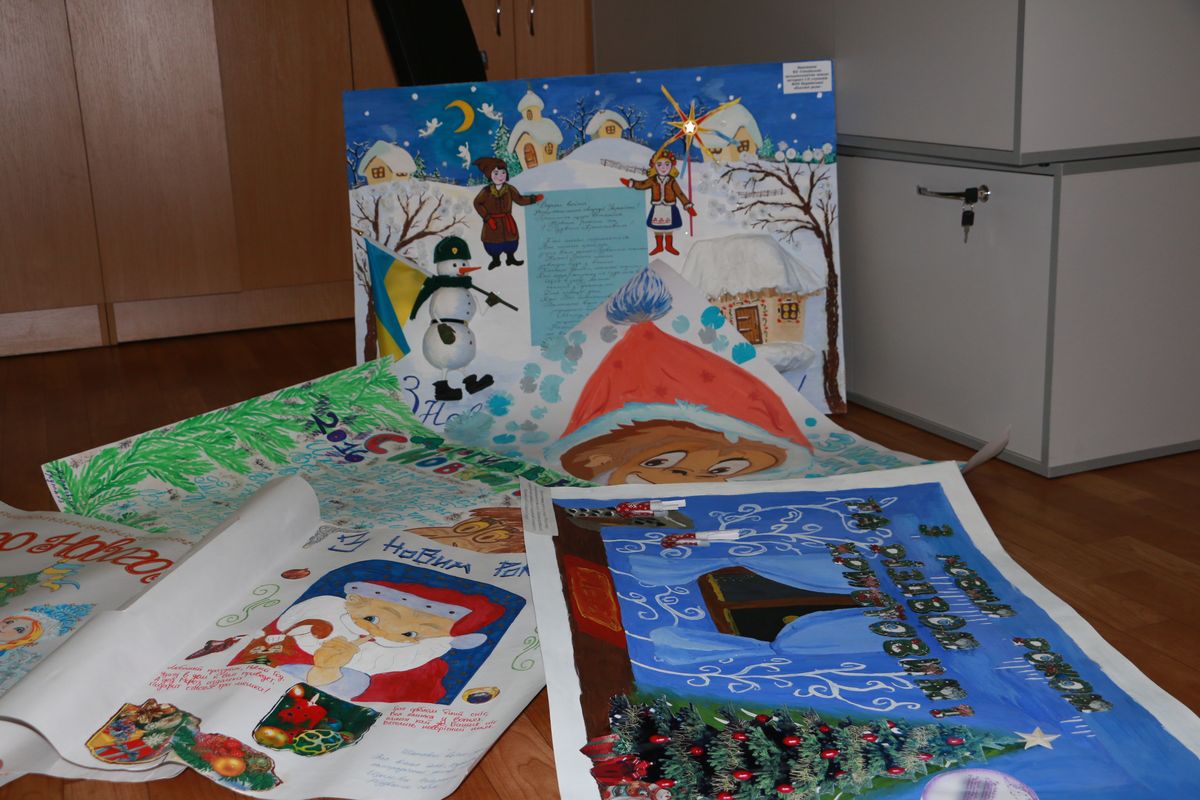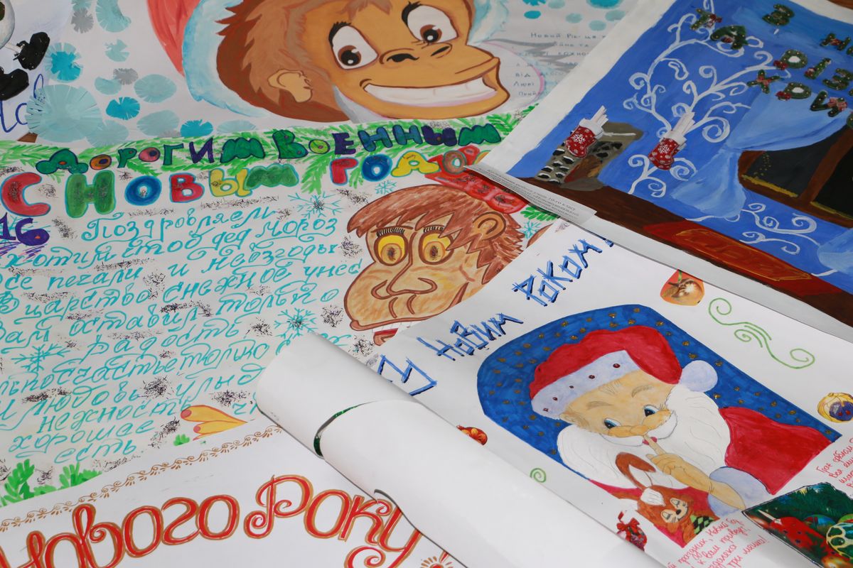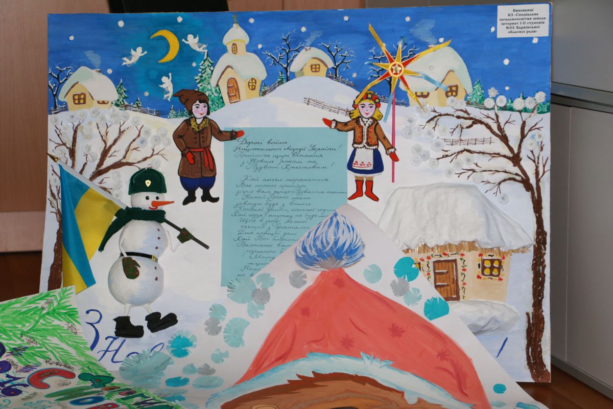 А уже 21 декабря первые новогодние плакаты и открытки, с любовью созданные руками школьников Харьковщины, журналисты и нацгвардейцы доставили в Славянск, откуда все они будут развезены по блокпостам.