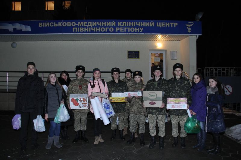 Лідери Харківської обласної ради старшокласників спільно з учнями Державної гімназії-інтернату з посиленою військово-фізичною підготовкою «Кадетський корпус» відвідали поранених воїнів, які проходять лікування у Харківському військово-медичному клінічному центрі Північного регіону та вручили їм листи-привітання, новорічні газети, подарунки, зібрані школярами Харківщини під час благодійної акції «Допоможи герою АТО», подякували за мужність, патріотизм, любов до рідної України, побажали найскорішого одужання та запевнили у тому, що вони для них є прикладом для наслідування. Про це Главному повідомили в Департаменті освти і науки місцевої облдержадмінстрації.