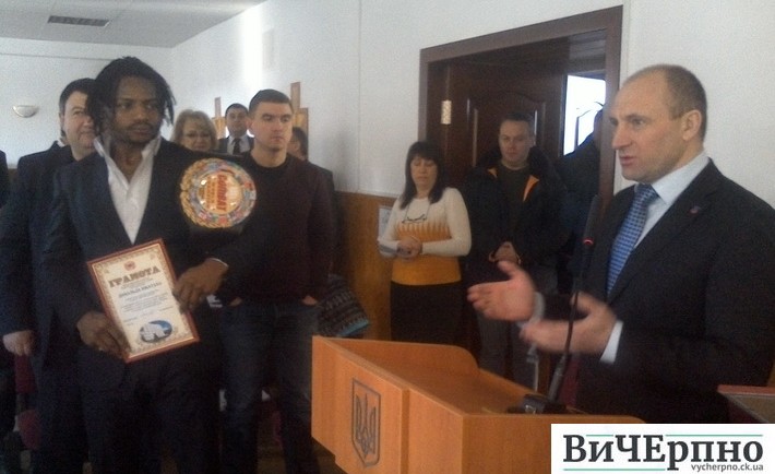 Награду Нжатаху и его тренеру Вячеславу Василенко вручил мэр Черкасс Анатолий Бондаренко. «Данная победа должна стимулировать нас делать наш город лучше. Так же, как Дональд одержал верх над россиянином, так и мы должны быть первыми в асфальтировании дорог, в строительстве, покупке новых троллейбусов, в работе депутатского корпуса и в принятии бюджета», — заявил градоначальник.