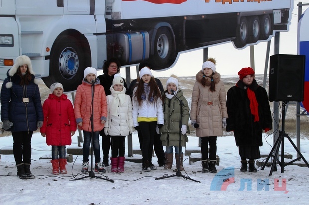 Главари ЛНР 30 декабря открыли памятник "Спасибо, Россия!" в поселке Изварино (Луганская область) на границе с Россией.