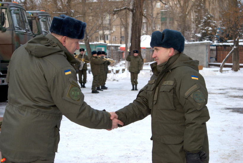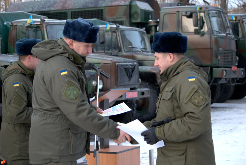 Приємним подарунком до Нового року для трьох військовослужбовців стало отримання чергових військових звань, а одному з кращих офіцерів частини начальник управління вручив відомчу заохочувальну відзнаку – нагрудний знак «За доблесну службу».