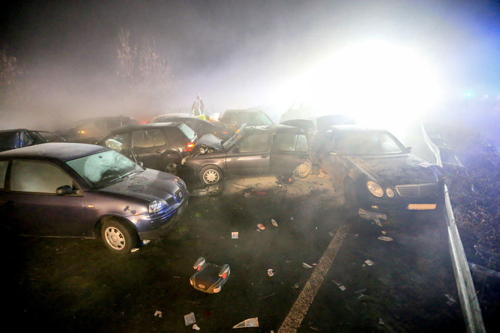 Авария произошла в городе Падерборн в земле Северный Рейн-Вестфалия. На автобане из-за густого тумана столкнулись 24 автомобиля. По словам представителя полиции, видимость в момент ДТП была «почти нулевая».