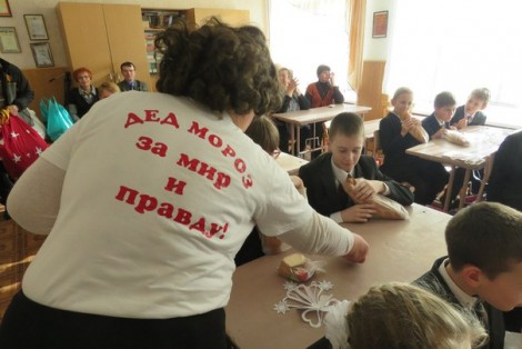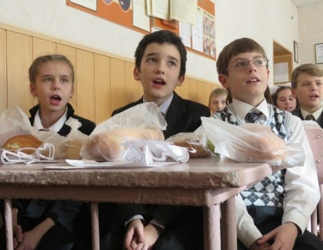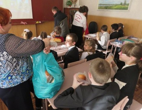 В одной из школ Макеевки дети встретили Новый год, как никто раньше до этого не делал. Ведь им в качестве подарков преподнесли батоны, да те самые нарезные батоны, из которых делают бутерброды утром к чаю.