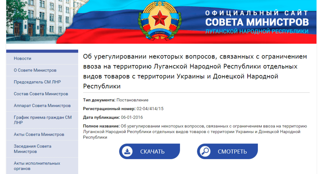 Как сообщает сайт Четвертая власть, согласно постановлению «Об урегулировании некоторых вопросов, связанных с ограничением ввоза на территорию Луганской Народной Республики отдельных видов товаров с территории Украины и Донецкой Народной Республики» физические лица, осуществляющие ввоз товаров, произведенных в Украине, могут провозить следующую продукцию для личного пользования в таком количестве: