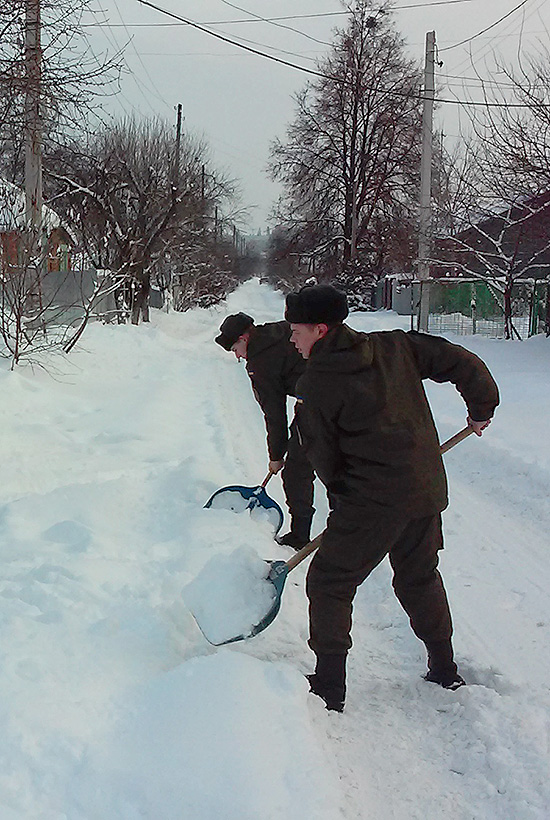 Поблизу дислокації підрозділу, бійці активно допомагали розчищати сніг пенсіонерам та сусідам, яким самостійно важко справлятися з цією задачею.