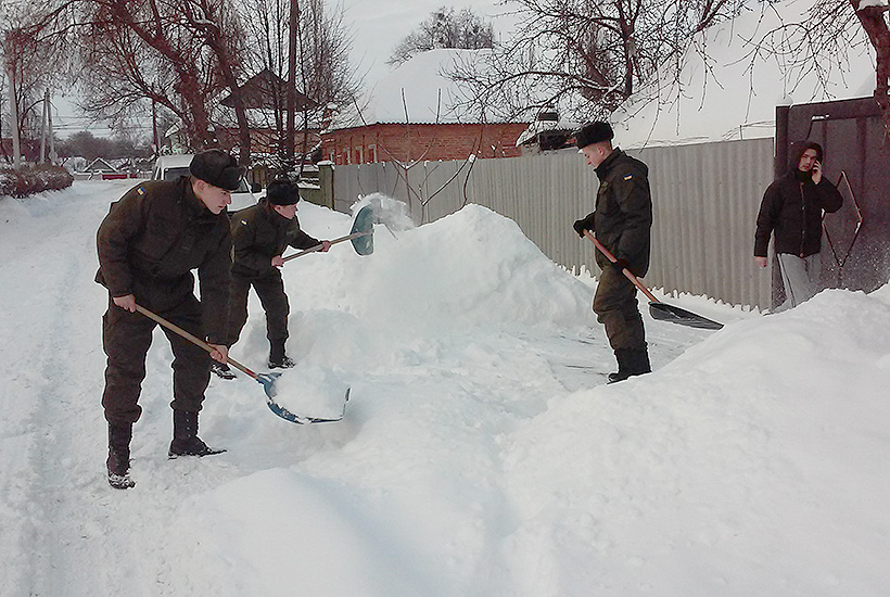 Суттєве погіршення погодних умов у вигляді снігу, хуртовини та ожеледиці накрило більшу частину нашої країни . Не оминули дані снігопади й Сумську область, де до ліквідації снігових наметів активно долучилися і військовослужбовці військової частини 3051.