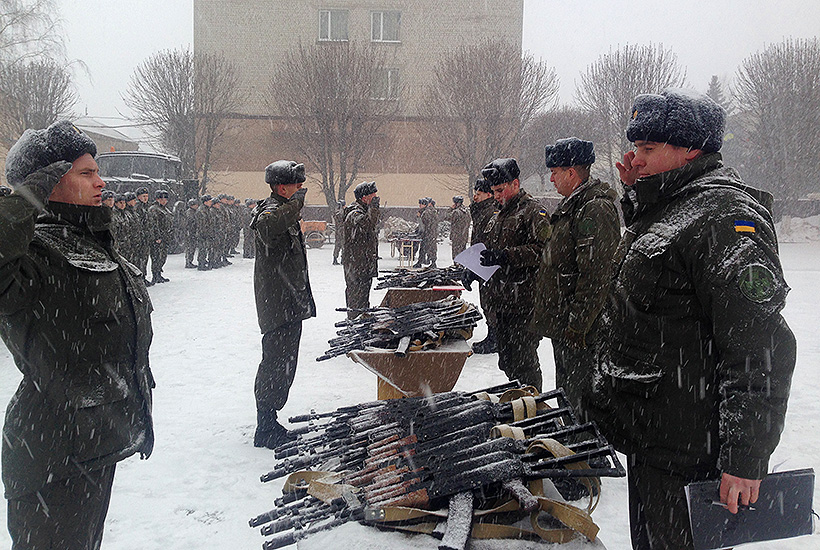 На стройовому плацу військової частини 3005 провели урочистий ритуал вручення зброї. Даний захід є важливою подією у житті молодих бійців. Він символізує собою відповідальність, якою буде наповнене майбутнє життя солдат. В подальшому військовослужбовці з особистою зброєю в руках будуть проходити навчання, виконувати вправи стрільб, а також різноманітні службово - бойові завдання.