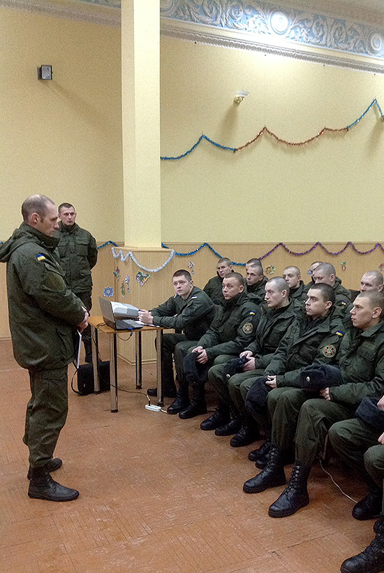 Офіцером-психологом частини спільно з курсантами Національної академії були надані теоретичні знання та проведені практичні тренінгові вправи з особовим складом молодого поповнення з метою формування у них психологічної готовності до виконання будь-яких покладених завдань.