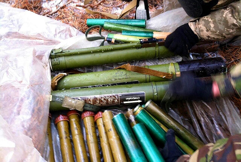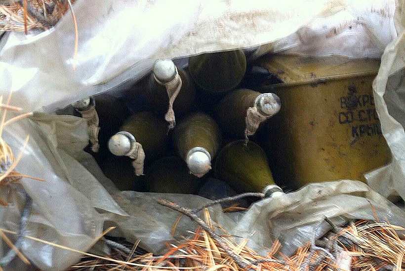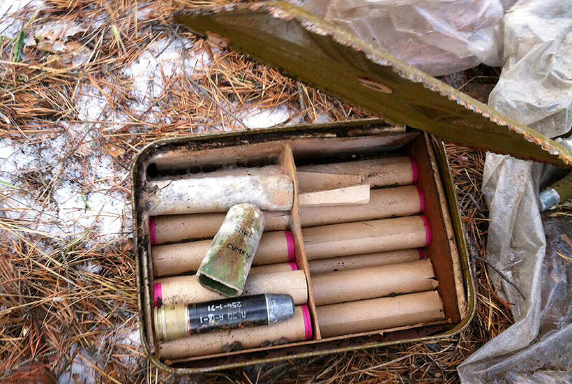 Військовослужбовці Харківської оперативної бригади під час несення служби в районі Станиці Луганської під час перевірки інформації про вибухонебезпечний предмет на території блок-посту знайшли цілий схрон боєприпасів.