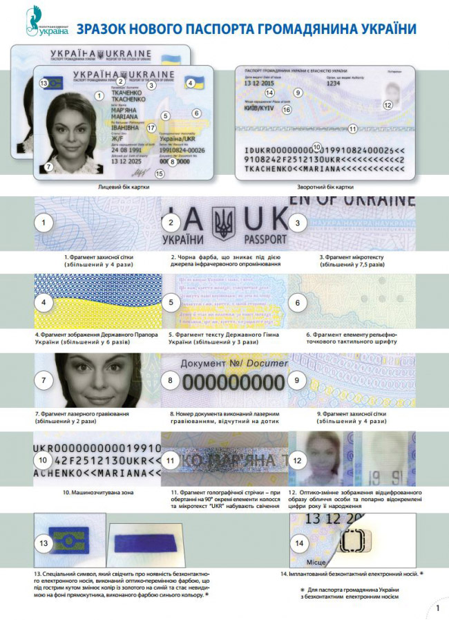 Полиграфкомбинат "Украина" обнародовал информацию о защитных особенности паспорта гражданина Украины нового образца, в соответствии с которой можно проверить подлинность ID-карты.