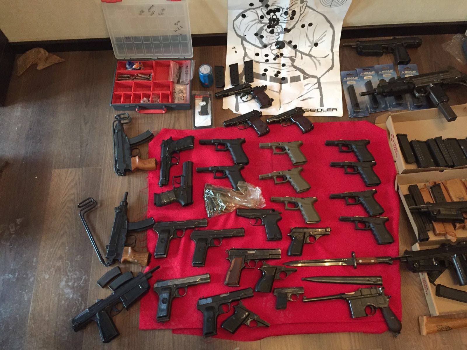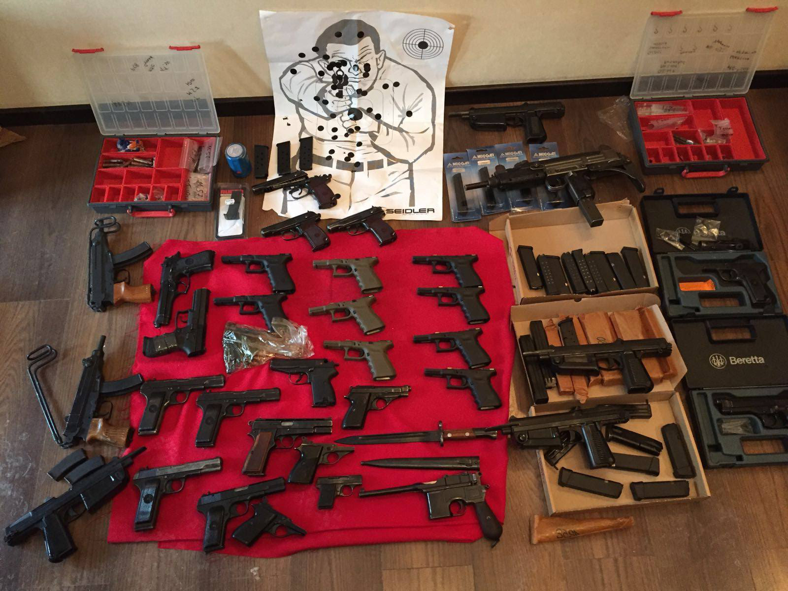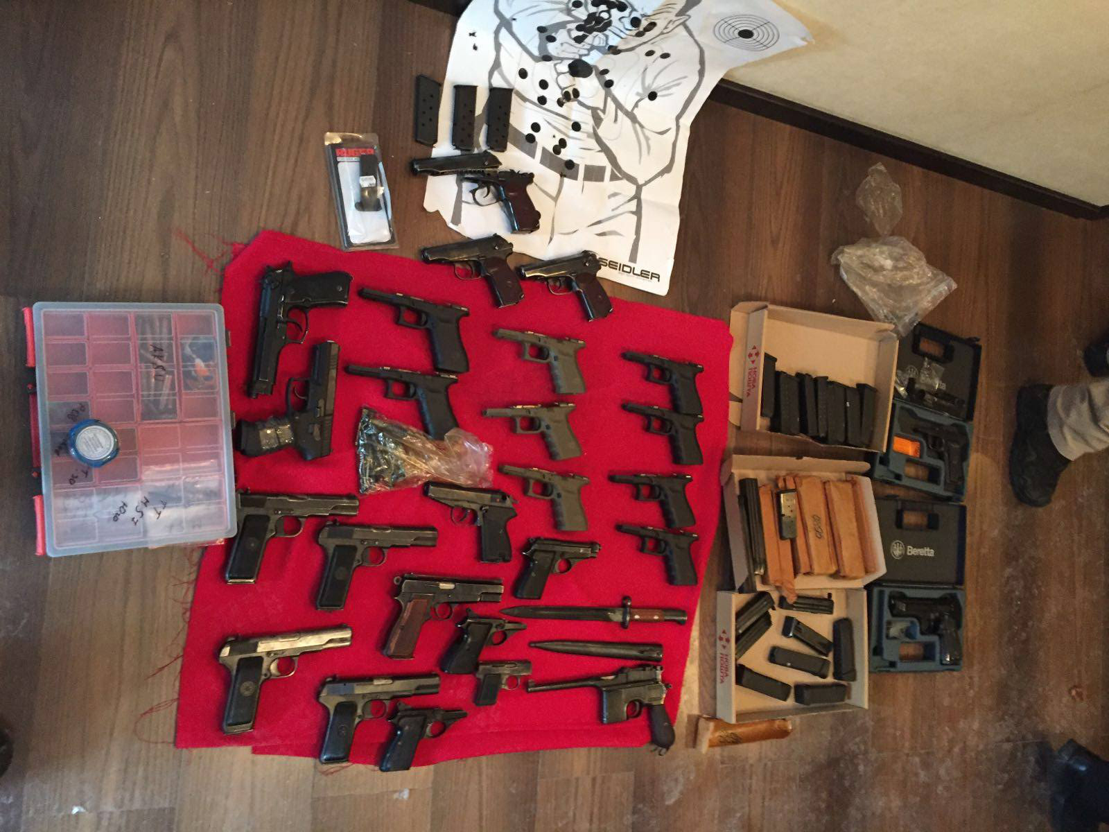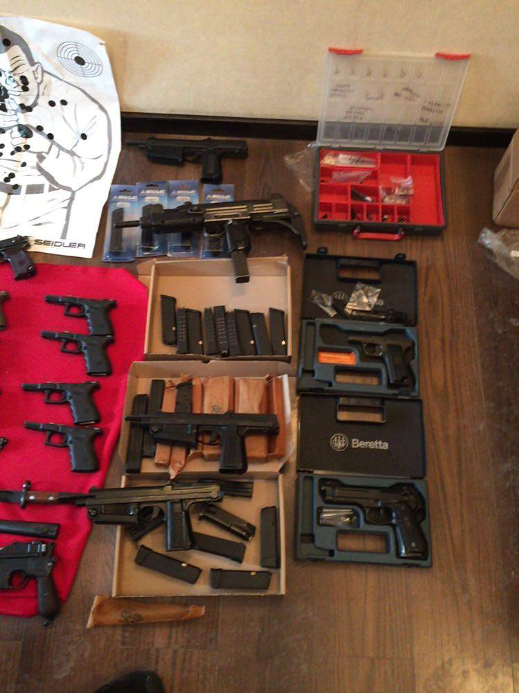 "Во время обысков по месту жительства и работы злоумышленника правоохранители изъяли 5 пистолетов «Скорпион», 4 пистолета Макарова, 4 пистолета «ТТ», 3 пистолета «Беретта», 15 пистолетов «Глок-19», 8 пистолетов «Глок-17», 3 пистолеты «Глок-19» цвета хаки, 1 пистолет «Вальтер Р-99», 1 пистолет «Вальтер Р-38», пистолет-пулемет «УЗИ», запчасти к нарезному огнестрельному оружию и большое количество холодного оружия. Весь арсенал был завезен в Украину через международные почтовые сервисы из стран Европы", - сообщили в ведомстве.