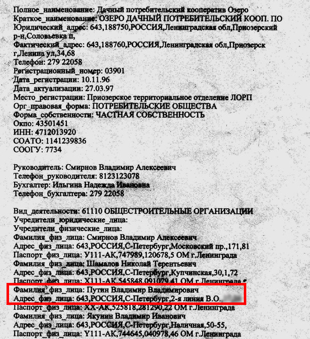 Это та самая квартира на 2-й линии Васильевского острова, которую Путины получили в январе 1995 года. Этот же адрес Путин указал при создании кооператива «Озеро»