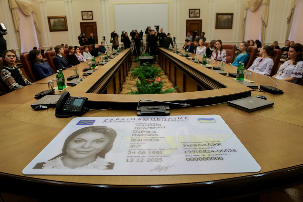 В понедельник, 25 января, Премьер-министр Украины Арсений Яценюк в Доме Правительства вручил первые паспорта гражданина Украины в форме ID-карты молодым людям, которым исполнилось 16 лет. Министр внутренних дел Арсен Аваков и глава Государственной миграционной службы Украины Максим Соколюк провели презентацию нового паспорта гражданина Украины в виде ID-карты, который вступил в силу с 1 января 2016 года. С 11 января Миграционная служба начала бесплатное оформление новых паспортов гражданина Украины в форме карты для граждан, которые достигли 16-летнего возраста и оформляют паспорт впервые.