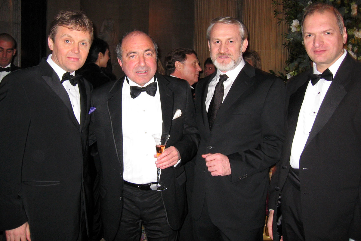 Слева направо: Александр Литвиненко, Борис Березовский, Ахмед Закаев и Юрий Фельштинский во время празднования 60-летия Березовского 23 января 2006 года