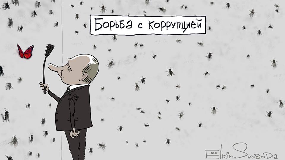 Известный российский карикатурист Сергей Елкин высмеял борьбу президента РФ Владимира Путина с коррупцией.